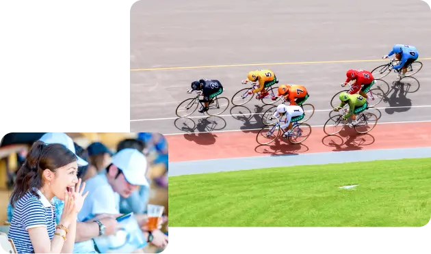 スタンド棟や空中歩廊で白熱の競輪観戦。